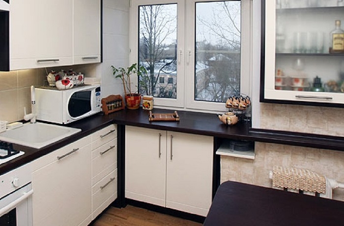 Чтобы получить дополнительную полезную площадь на кухне и разгрузить пространство – задействуйте подоконник, превратив его в функциональную зону. Подоконник может использоваться в качества: