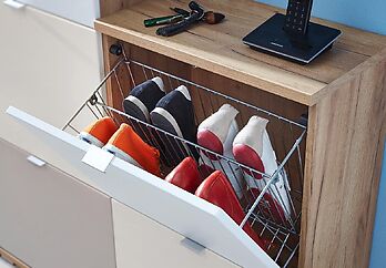 Простейшим решением для хранения обуви является обувница. Её приобретают как для компактных, стесненных прихожих, так и для просторных