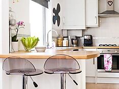 • Пространство под барной стойкой – лучшее место для размещения табуретов или стульев. После завтрака, обеда или ужина их просто убирают «с глаз долой», визуально расширяя и освобождая пространство.