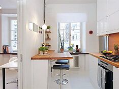 Барные стойки популярны во все времена. Они прекрасно вписываются в любой кухонный интерьер, обладают хорошей функциональностью и практичностью. На просторных кухнях барная стойка – вполне типичный атрибут, особенно, если в квартире проживает молодая семья. А как обстоят дела с маленькими кухнями? Ведь конструкция требует определённых свободных метров площади, да и запас по проходам должен остаться. В связи с этим к дизайнерам часто обращаются с вопросом: «А рационально ли делать стойку бара на кухне площадью с десяток квадратных метров?». Однозначного ответа нет. Некоторые полагают, что она способна вписаться и в компактный интерьер, отдельные дизайнеры считают, что барные стойки уместны только в просторных студиях или совмещённых кухнях-гостиных.