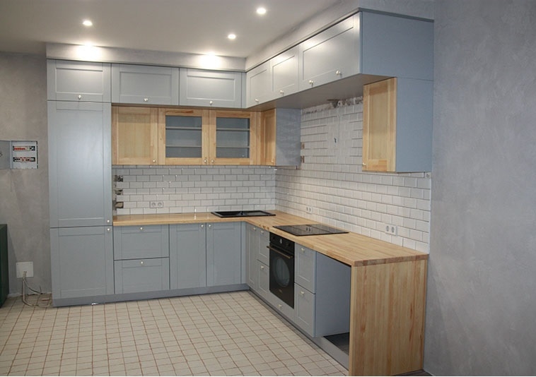 Бюджетной мебели из специализированных магазинов, как правило, немного не достает высоты для установки «под потолок». В результате получается некрасивый и непрактичный зазор, а в пространстве между потолком и верхними крышками постоянно скапливается сантиметровый слой пыли. Такой зазор – это прямая потеря полезного пространства, которого, на самом деле, очень много.
