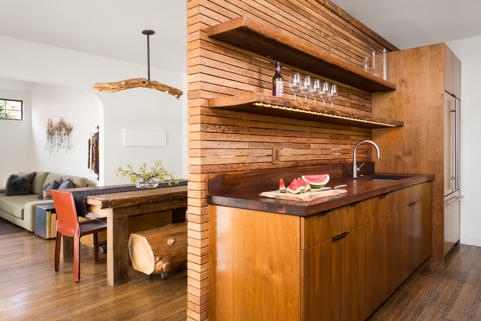 Дизайнеры утверждают, что двух разных оттенков дерева в пределах спальни, гостиной, прихожей вполне достаточно. А иногда хватает и одного. Совместить сразу три тона – кропотливая и непростая задача. Их обязательно придется разбавлять различными драпировками и выкрасами. Чтобы понять, сочетаются ли разные оттенки натурального дерева друг с другом, нужно обязательно сравнивать образцы. Причем, «живые», а не фотографии из интернета. Попросите в магазине небольшой образец под залог и приложите его к другому дереву в интерьере. Вы сразу поймете, подходящий это вариант или нет.