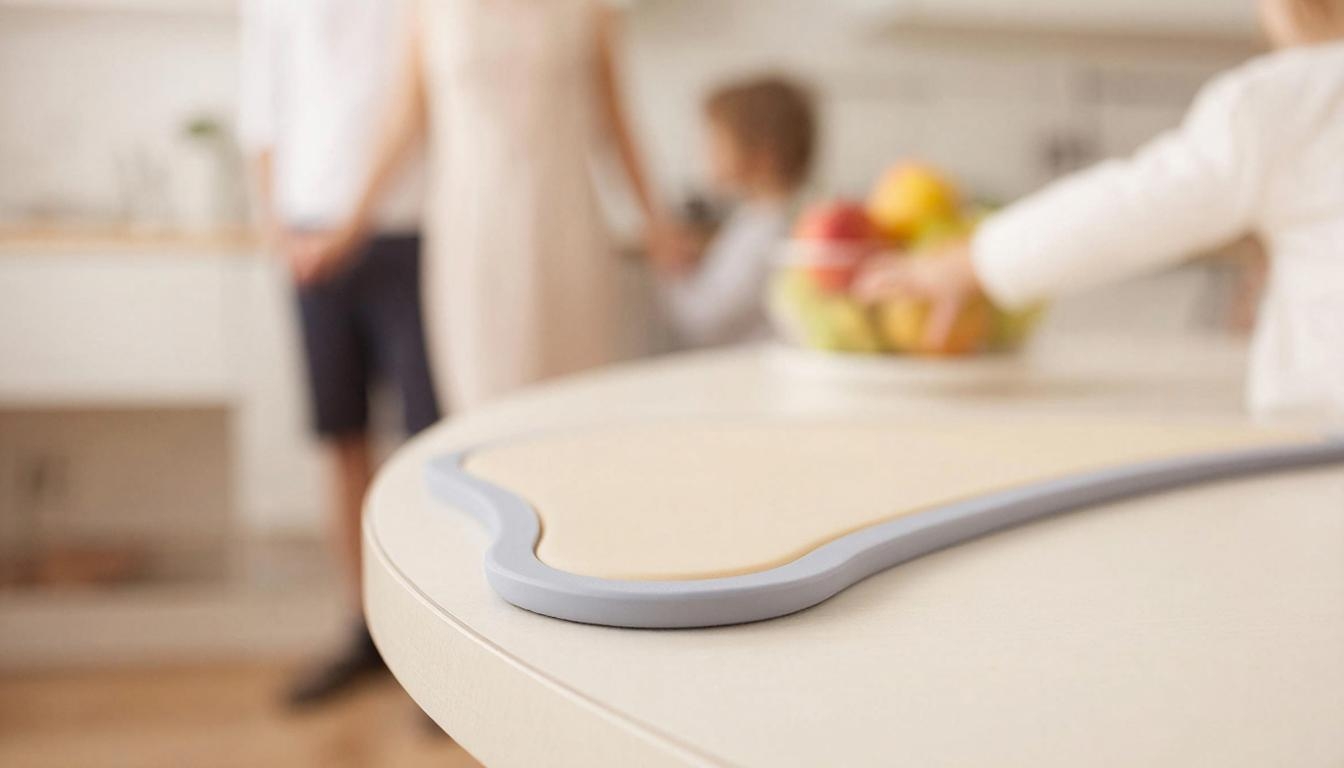 Защита от острых углов. Мебельные фасады с закругленными формами — идеальное решение. Если гарнитур уже есть, на острые углы столешниц и столов обязательно установите силиконовые или пластиковые накладки. Это убережет ребенка от серьезных ушибов.