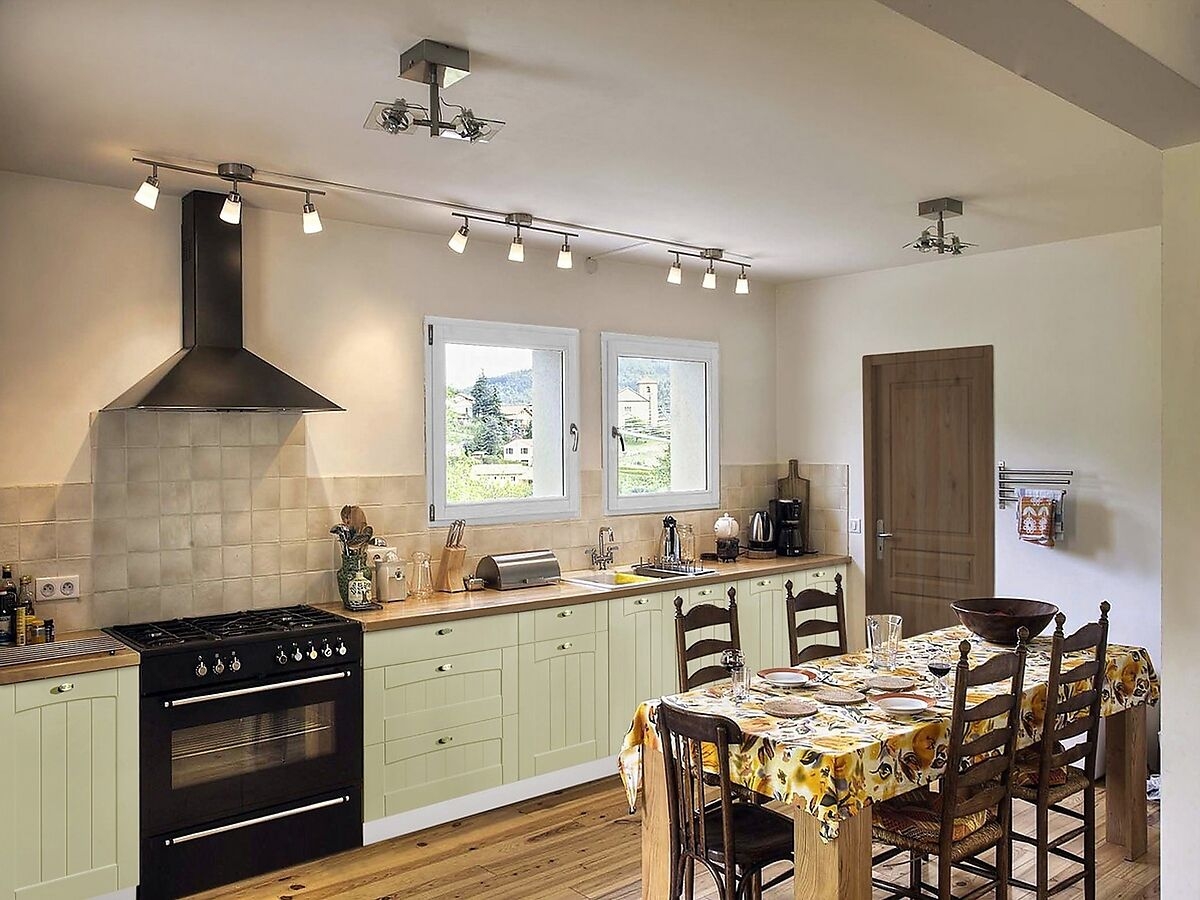 Классический белый потолок – наиболее распространённое и популярное решение. Фактура может быть абсолютно любой: от глянца до сатина. Глянцевые потолки чаще всего устанавливают на кухнях небольшого размера. Если стиль кухни выполнен в «кантри» или «шале», деревянные балки сами по себе станут идеальным дополнением к фисташковым панелям. Натуральный природный цвет дерева в сочетании с зелёными оттенками никогда не выйдет из моды.