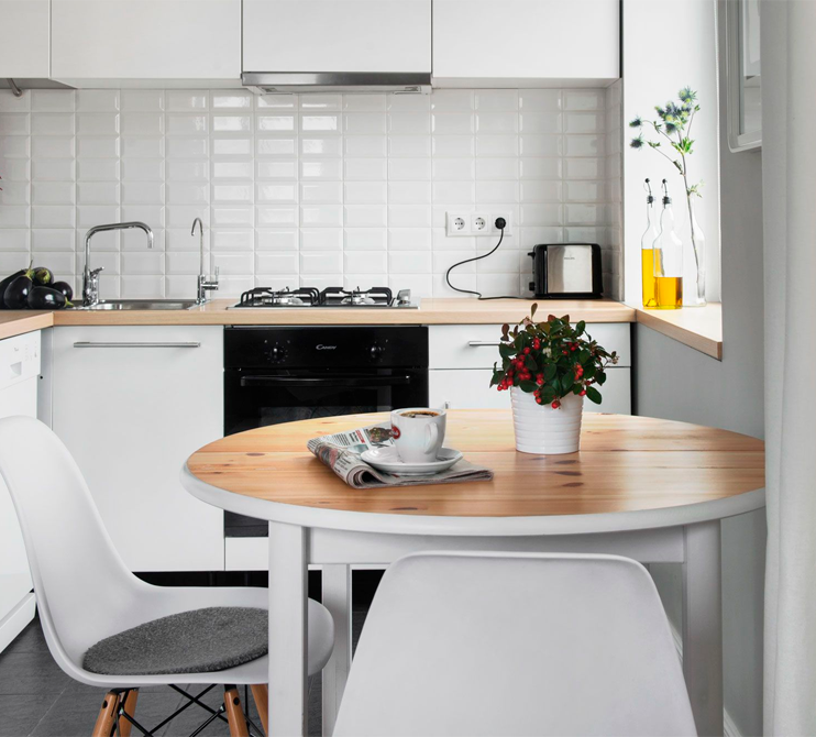 Значительную часть жителей постсоветского пространства составляют обитатели малогабаритных квартир в домах, которые в разговорной лексике называют хрущёвками. Квартиры в хрущёвках отличают низкие потолки, маленькая общая площадь, узенькие прихожие и тесные кухни, средняя площадь которых составляет 5,5 – 6 квадратных метров. Для приготовления пищи кухня таких размеров подходит, а вот обустройство обеденной зоны даже для немногочисленной семьи вызывает серьёзные затруднения. Владельцам квартир с маленькими кухнями, желающим оформить их интерьер, адресованы многочисленные советы дизайнеров, часть из которых представлена в статье.