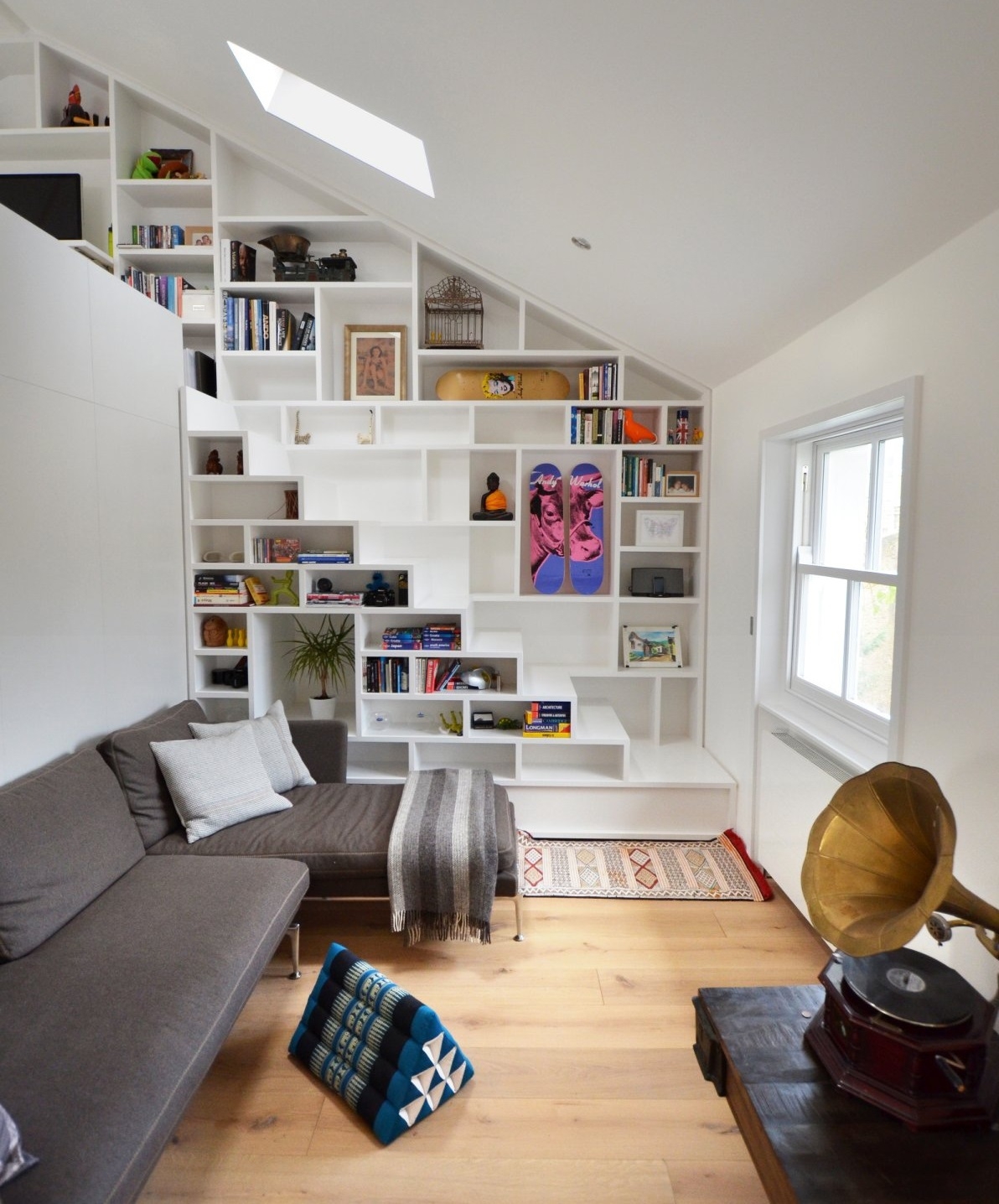 - Не следует выбирать типы конструкций с большим количеством полок. Они визуально уменьшают помещение и не подходят для компактных комнат.