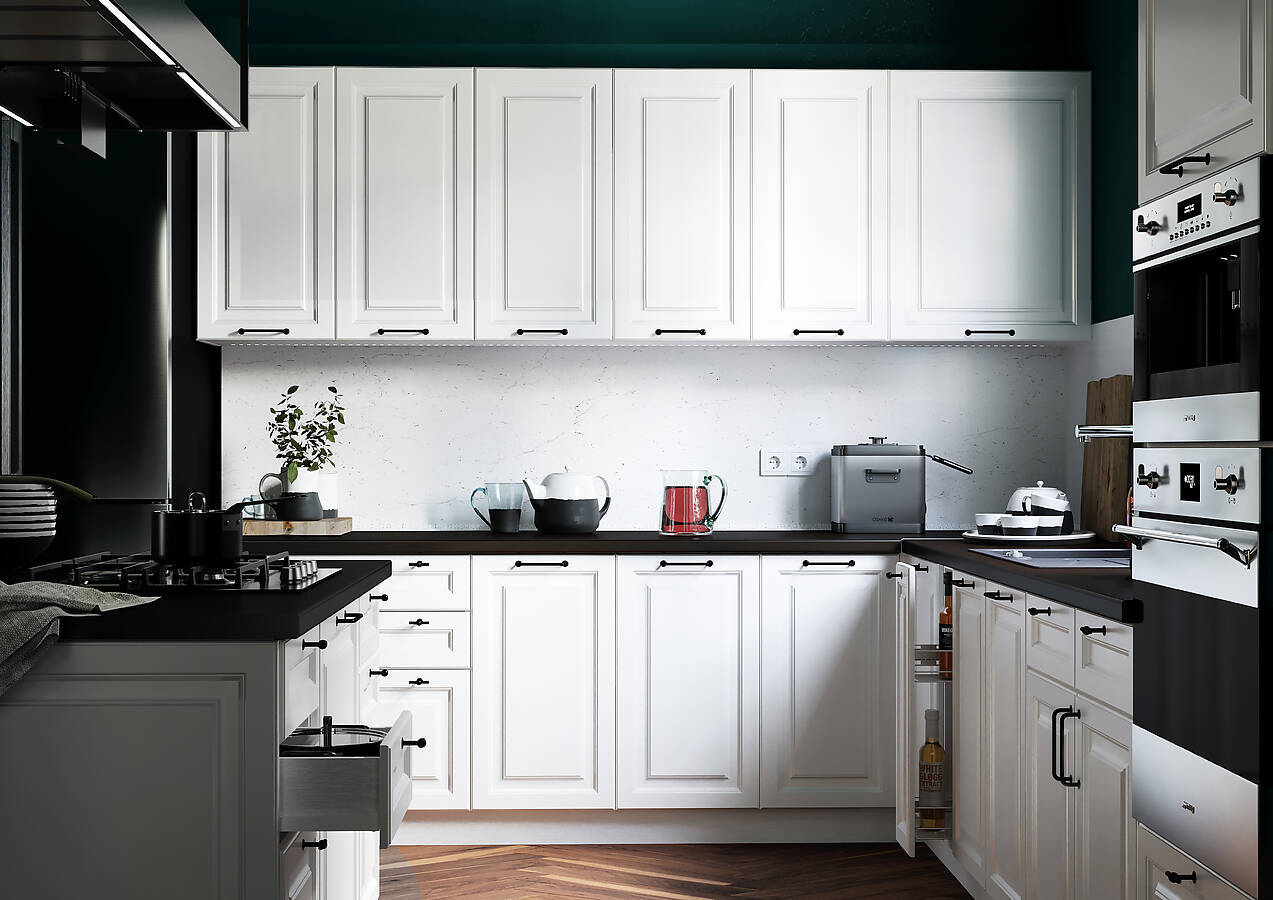 Уместным будет покрасить стены в белый цвет и добавить сочных акцентов. Для белой кухни стоит рассмотреть систему без ручек либо со скрытыми ручками. Отдельно стоит упомянуть о влиянии белого цвета на психику и эмоциональное состояние человека. Как правило, белые кухни выбирают люди открытые, стремящиеся к чистоте, гармонии и умиротворенности. Белый цвет располагает к беседе, в холодное время и в непогоду он спасёт вас от хандры и добавит радостных эмоций.
