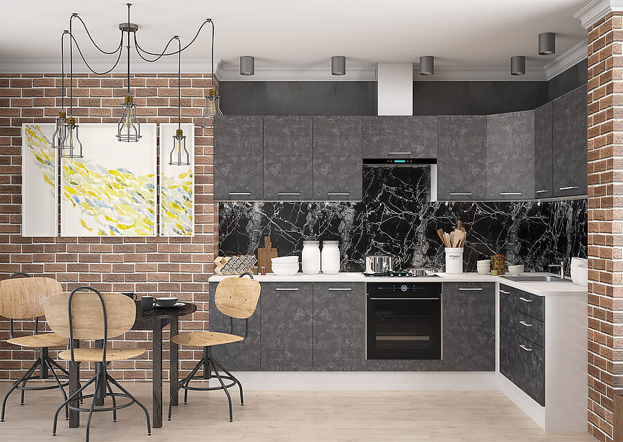 Белый и черный цвет — одно из модных направлений в оформлении кухни, которое остается популярным уже длительное время. Такое оформление выглядит стильно элегантно и строго. Вставки деревянного или каменного типа помогут преодолеть ощущение резкости при переходе оттенков. Серые оттенки в этом сезоне считаются самыми популярными оттенками. Такой цвет выглядит нейтрально, но благородно и идеально сочетается с яркими оттенками. Такой вариант отделки создает особую атмосферу на кухне и настраивает на положительные эмоции.