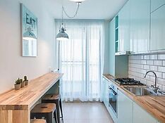 Если подоконник в качестве барной стойки не подходит по каким-либо причинам, то приобретите её отдельно и разместите вдоль стены. Она компактна, но при этом является идеальным местом для завтрака. Барная стойки особенно эффективный вариант, если в квартире проживает не более 2х человек.