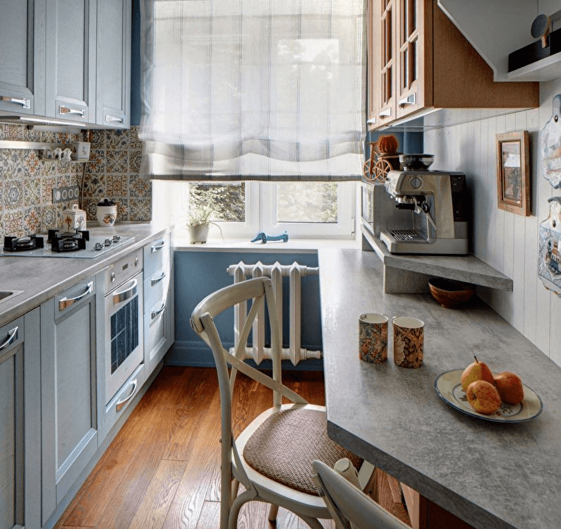 Стулья всегда занимают много места, хотя на первый взгляд это незаметно. Присмотритесь к мягкой скамье – это хорошая альтернатива. Вполне подойдёт для маленьких кухонь и диван без подлокотников. Если позволяет место, установите кухонный уголок. За ним с комфортом разместятся 3-4 человека. Как правило, в комплекте всегда идут небольшие табуретки, которые можно всегда убрать под столешницу.