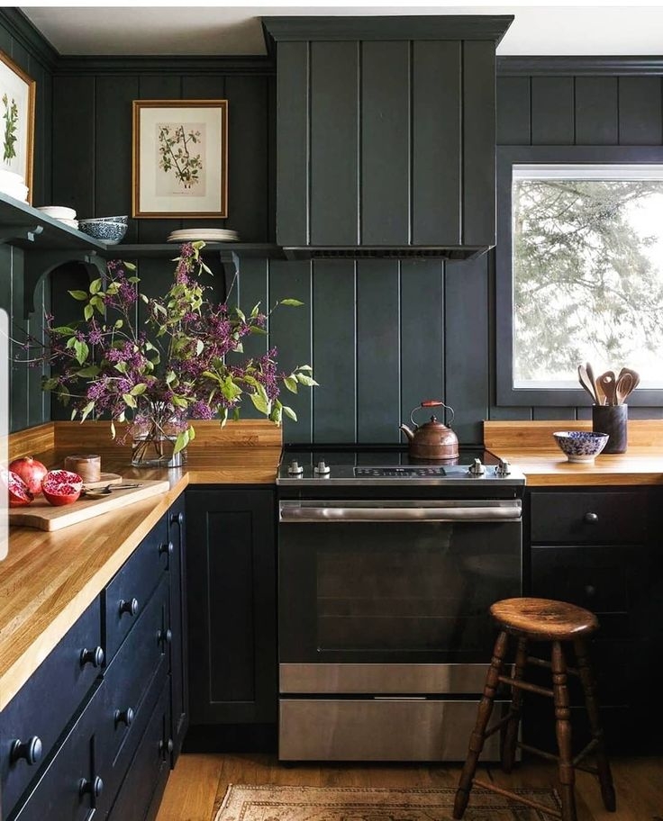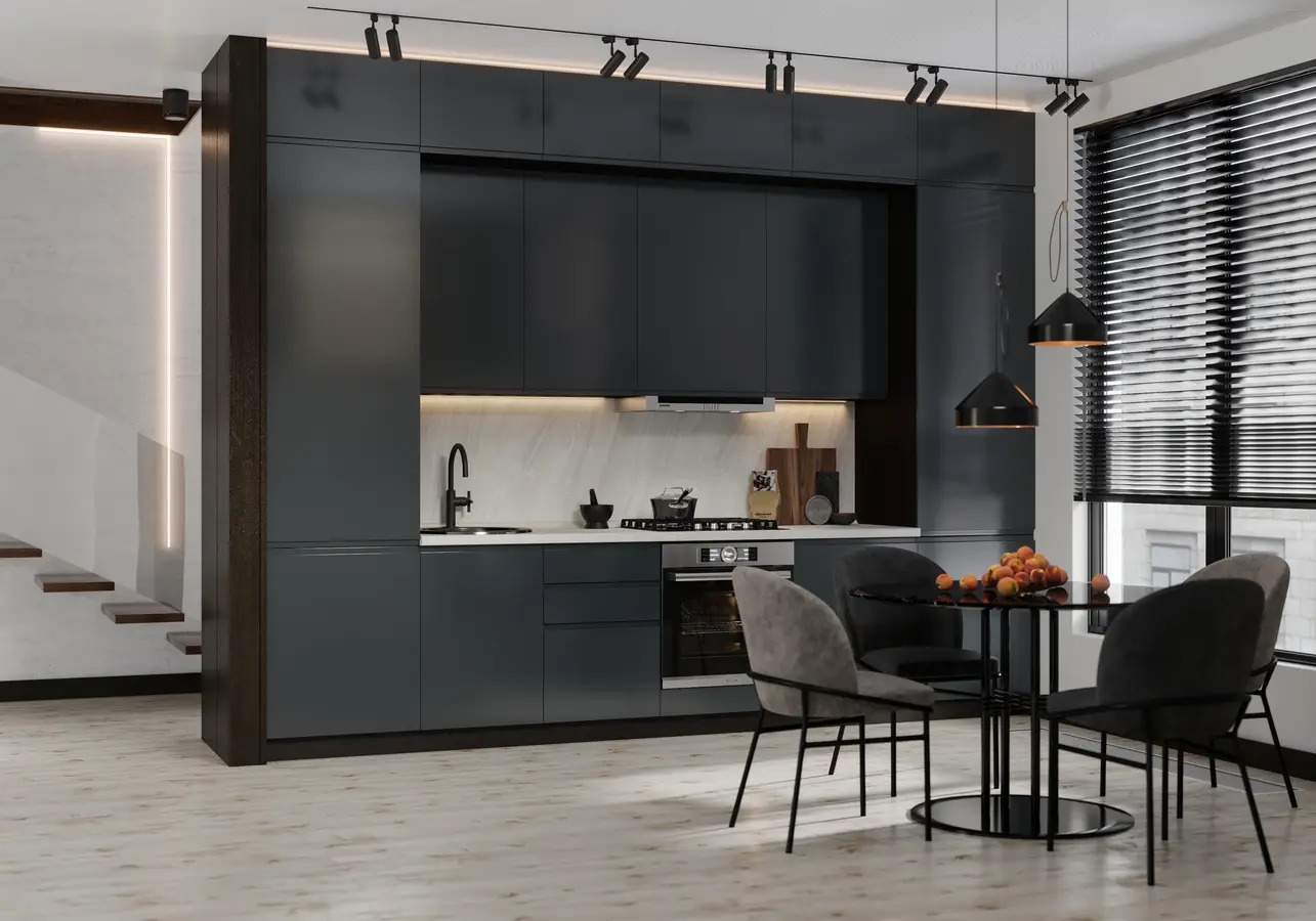 Темный оттенки в интерьере – априори универсальный вариант. Черным цветом можно легко обыграть любой стиль: от классики до модерна, от лофта до техно. Достоинства черного цвета – это способность связывать воедино всю гамму, делать оттенки насыщенными и глубокими, подчеркивать стильность и четкость кухонного гарнитура.