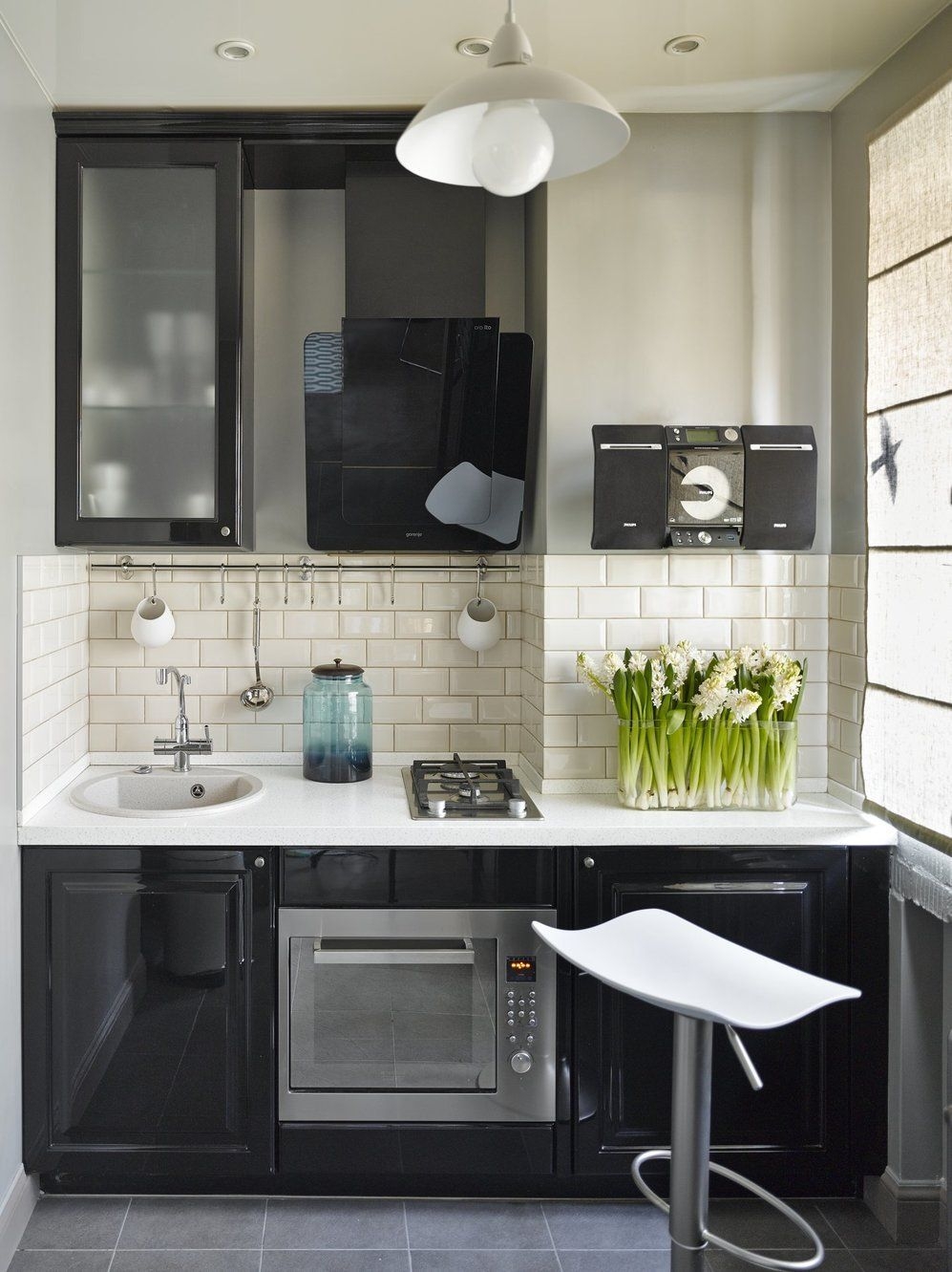 Даже в компактное помещение можно удачно вписать черный кухонный гарнитур. Придерживайтесь следующих советов: