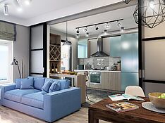 Как правило, у дизайнеров всегда есть несколько десятков готовых решений для совмещённых кухонь-гостиных. Это объясняется тем, что современные многоквартирные дома строят «по шаблону». Заказчик может выбрать стиль, цветовую гамму, изучить варианты, которые пользуются наибольшей популярностью.