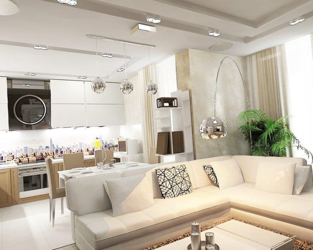 Как правило, у дизайнеров всегда есть несколько десятков готовых решений для совмещённых кухонь-гостиных. Это объясняется тем, что современные многоквартирные дома строят «по шаблону». Заказчик может выбрать стиль, цветовую гамму, изучить варианты, которые пользуются наибольшей популярностью.