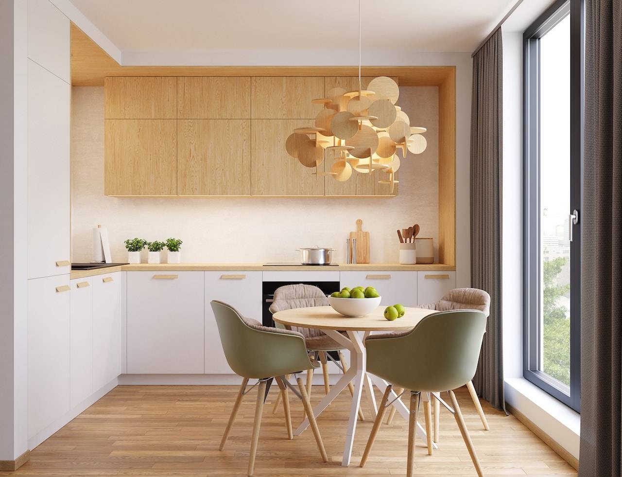 Опять же, главное – чувство меры. На кухне не должно быть слишком много декора, цветовых акцентов или натуральной зелени. Пересыщать интерьер ни в коем случае не стоит. Лучше вовремя остановиться и получить максимально удобное, полезное и функциональное пространство.
