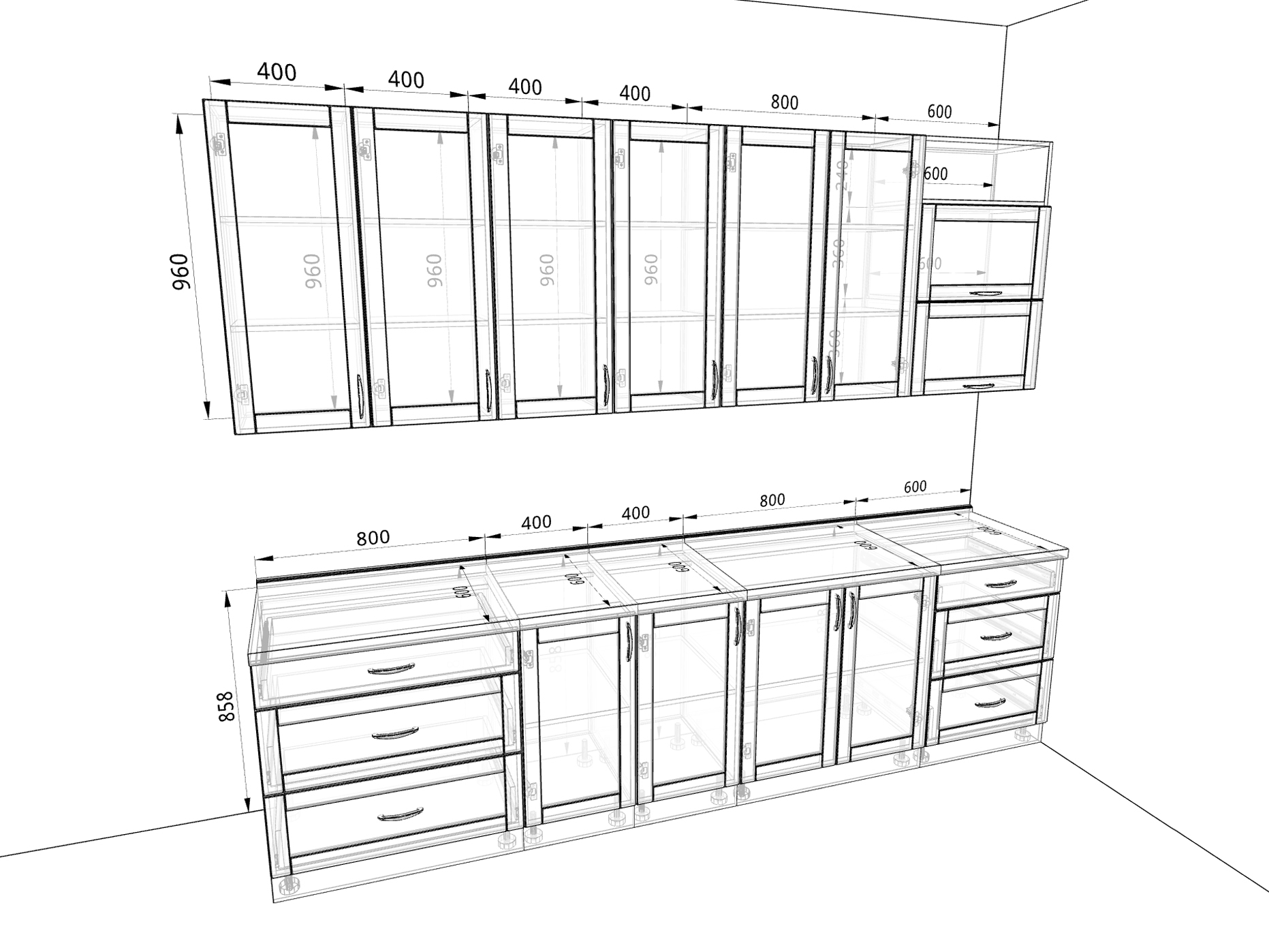 - шкаф глухой высокий, 400 мм - 4 шт;