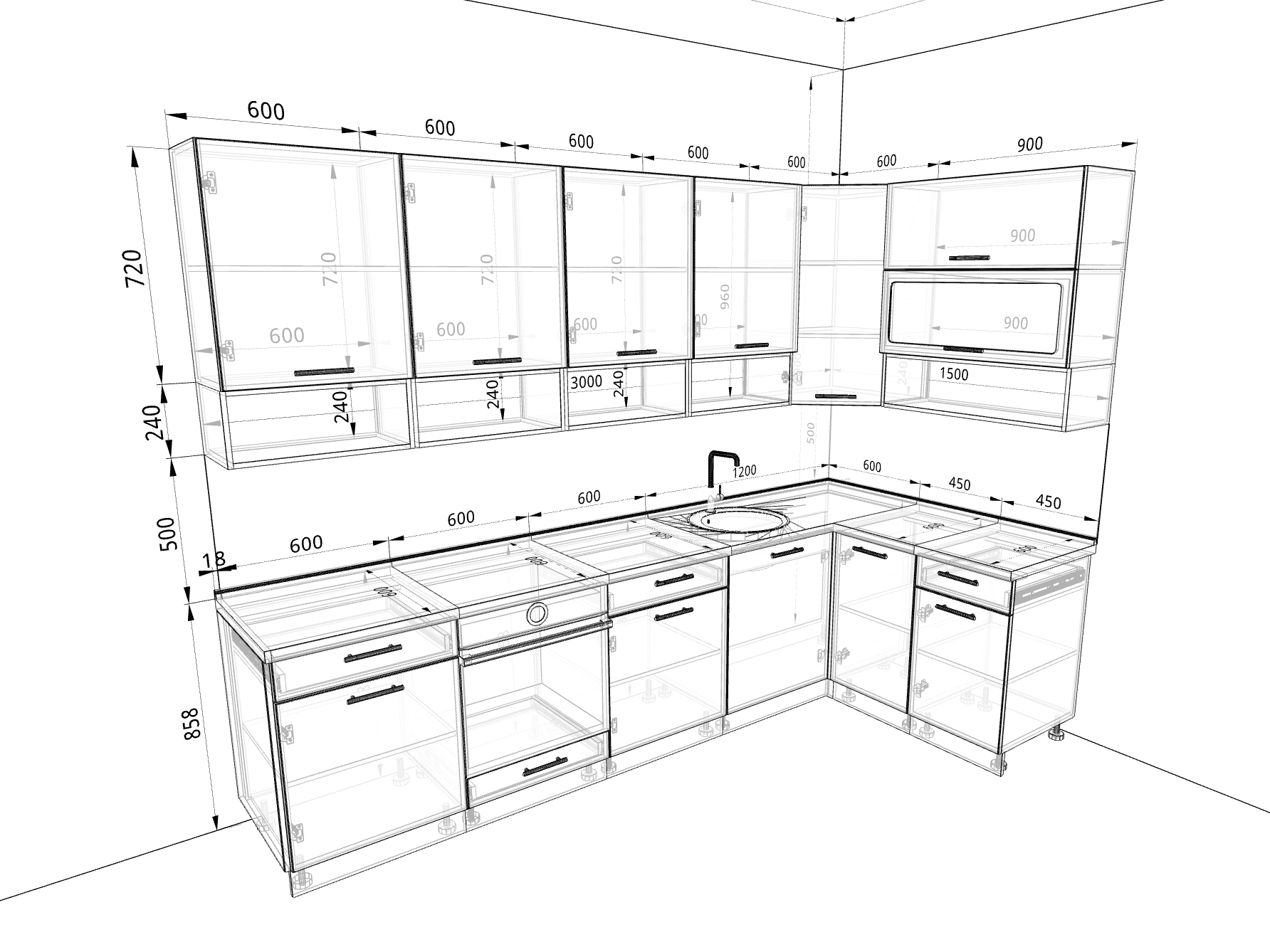 - шкаф угловой высокий, 600 мм;