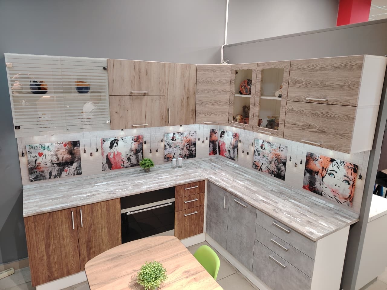 В комплект входят столешница и стеновая панель. Есть возможность сменить цвет фасадов.