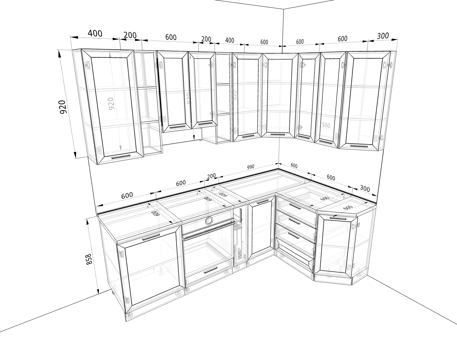 - шкаф угловой высокий, 600 мм;