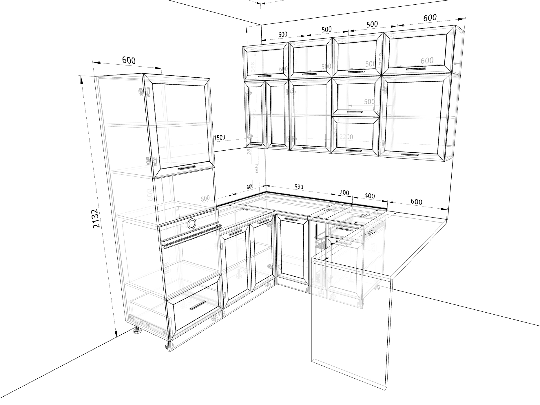 - колонна под духовой шкаф и микроволновку, 600 мм;