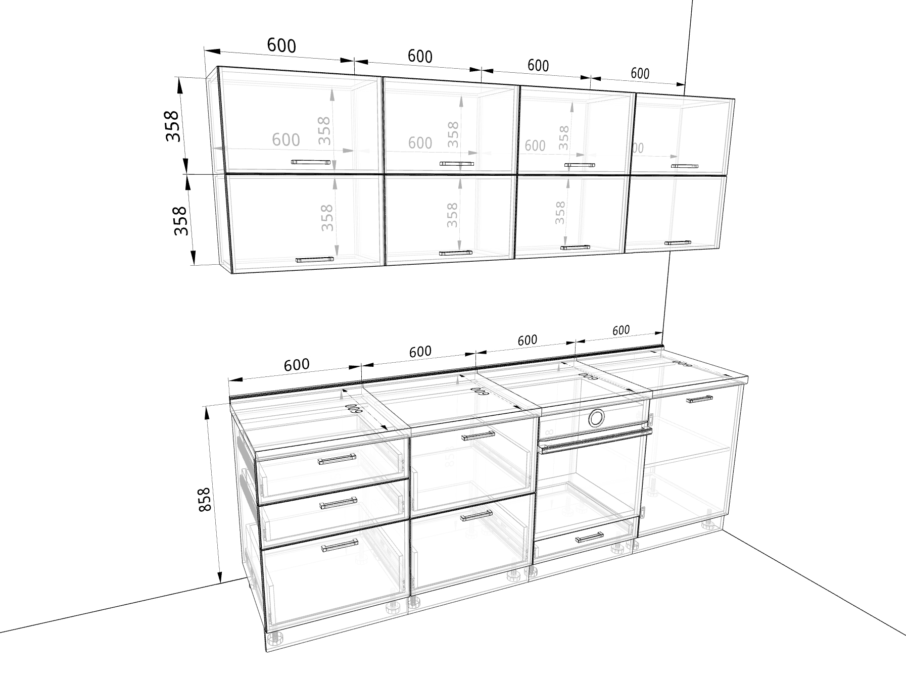 - колонна под духовой шкаф, 600 мм;