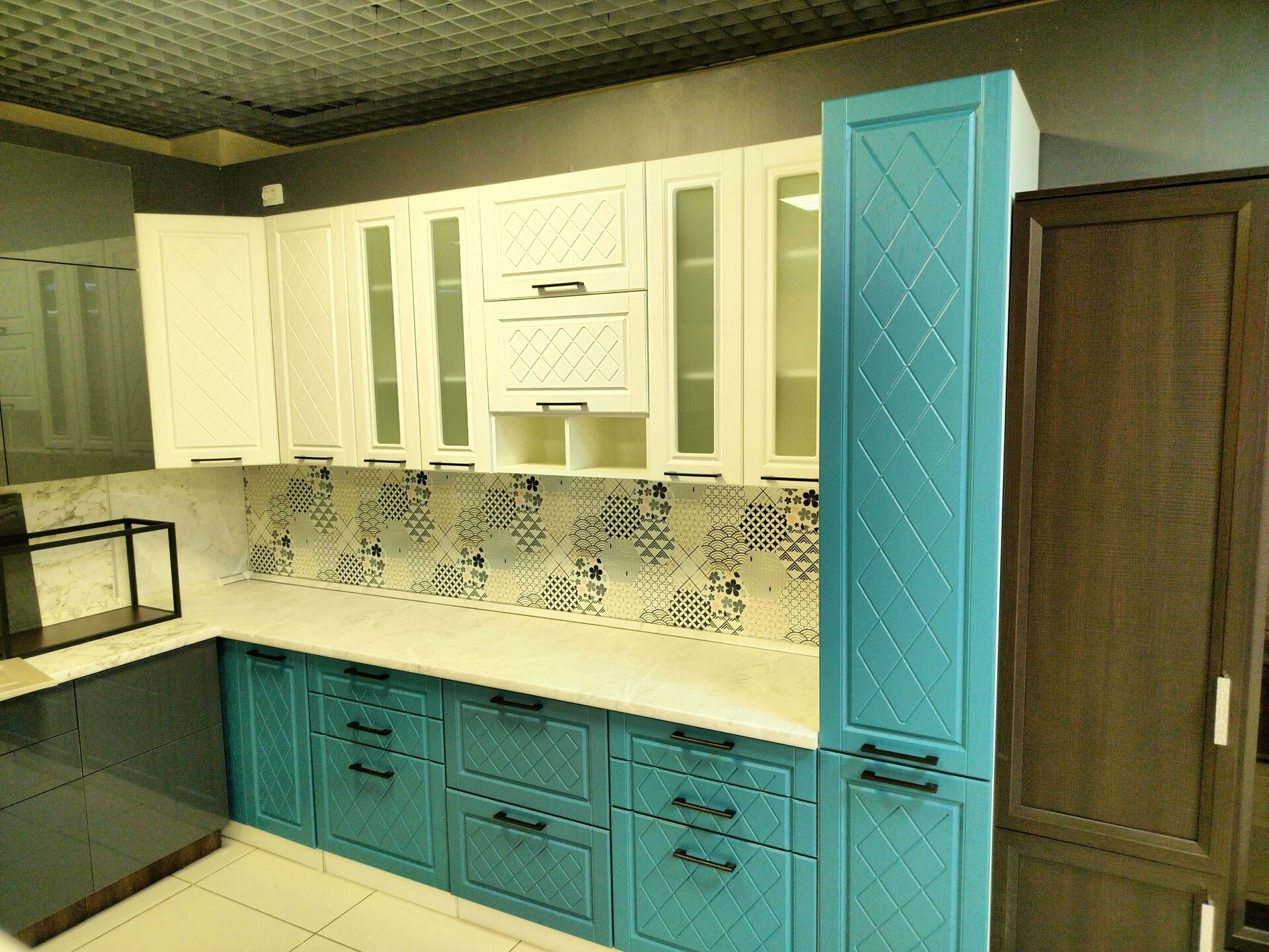 Кухня находится в магазине по адресу - Московская область, Балашиха, микрорайон Кучино, Центральная улица, 68с1, ТЦ Первый Мебельный, 3 этаж