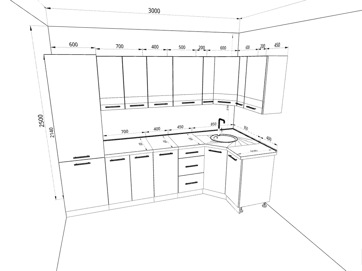 Столешница, стеновая панель и мойка в комплект НЕ ВХОДИТ.