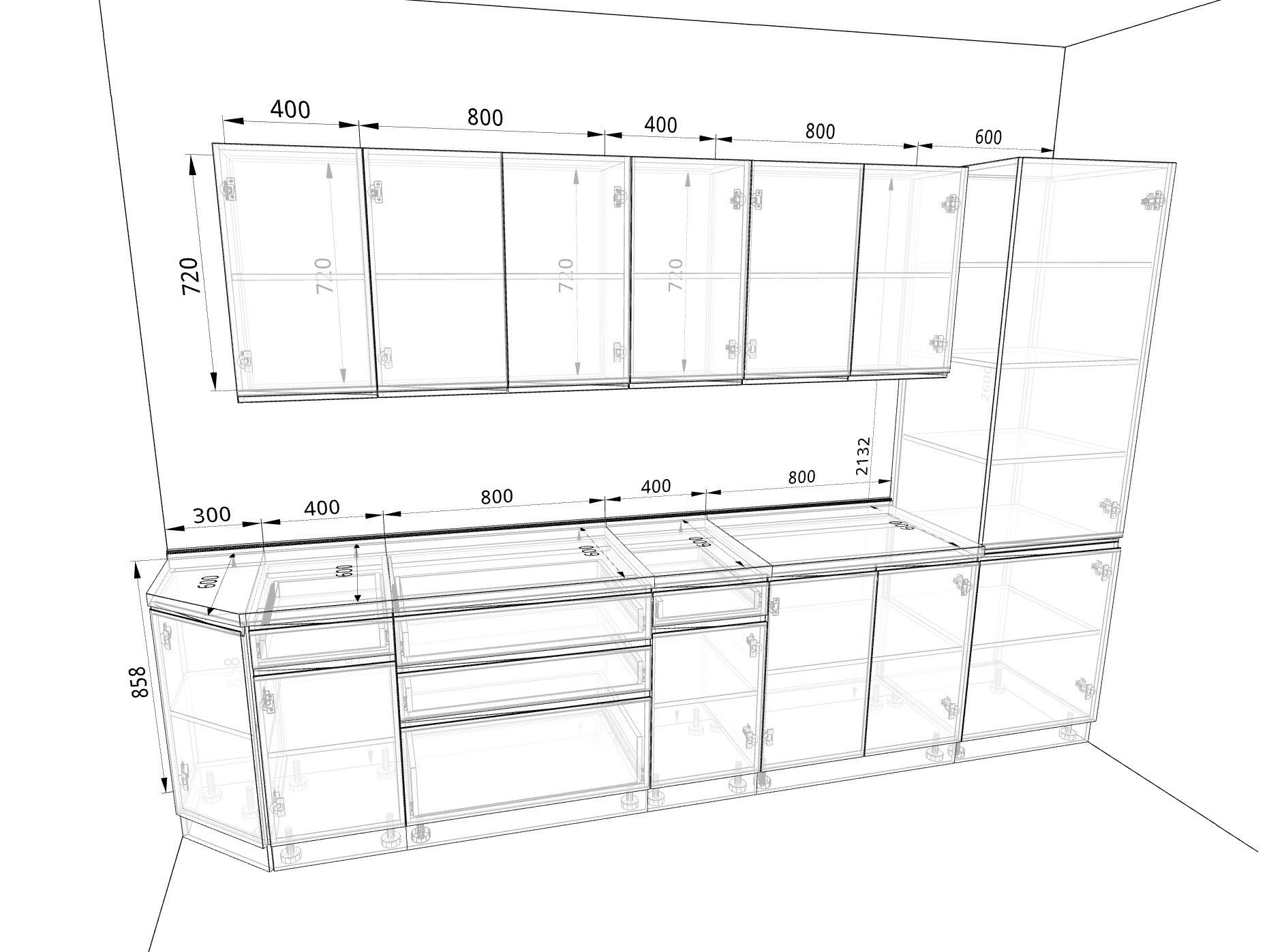 - шкаф глухой однодверный, 400 мм - 2 шт;