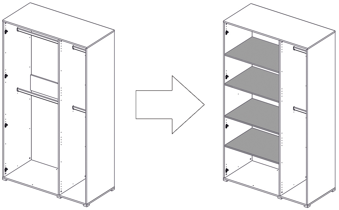Комплектом полок из 4 штук к Шкафу 3х створчатый (Ширина: 1500)