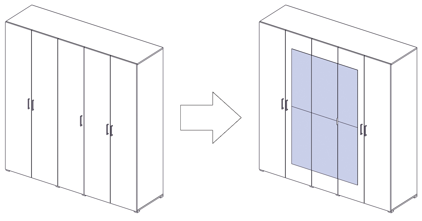 Внимание!!! Если зеркало во всю ширину фасада, то оно закрывает собой место под крепление ручки и исключает возможность прикрепить ручку к дверце.